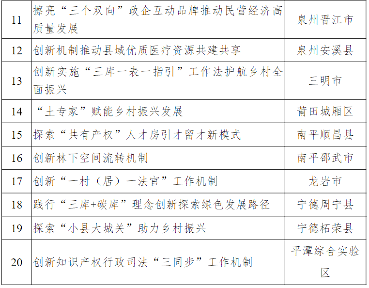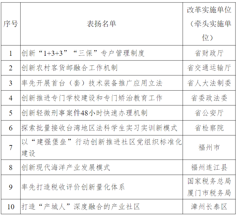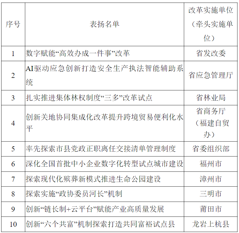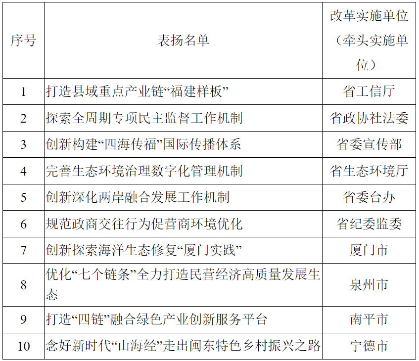 日前,记者从福建省委改革办获悉,2024年福建省改革优秀案例评选活动表扬名单公布,40个优秀案例从全省220个推荐参评案例中脱颖而出、榜上有名。