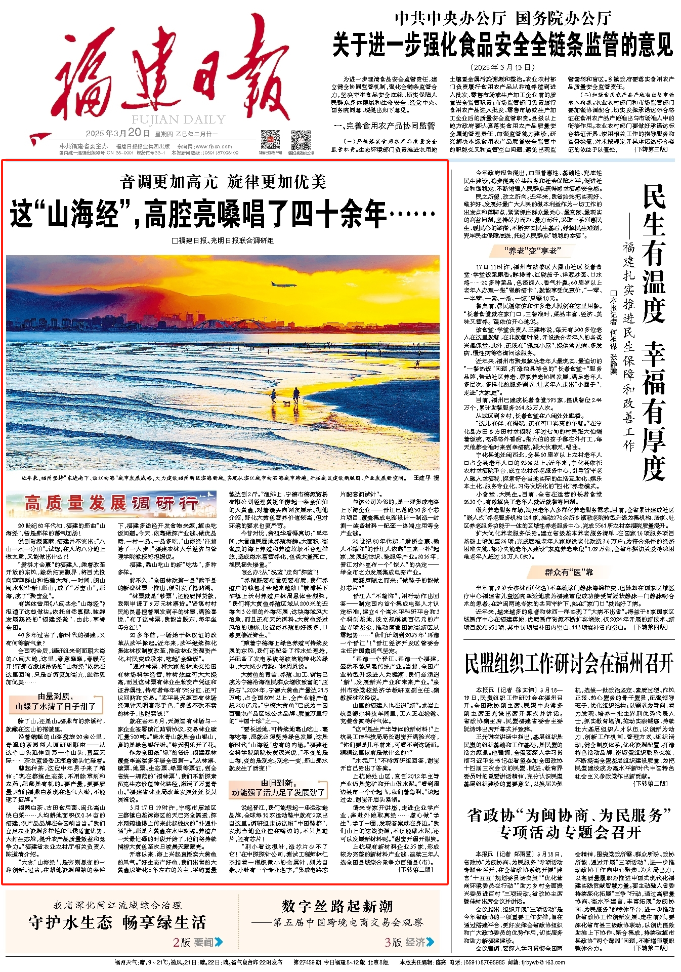 全国两会后,调研组来到面朝大海的八闽大地,这里,春意融融,春暖花开!而那首激越昂扬的“山海经”依然在这里回响,只是音调更加高亢,旋律更加优美……