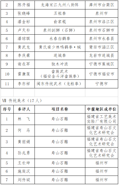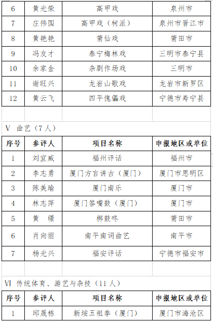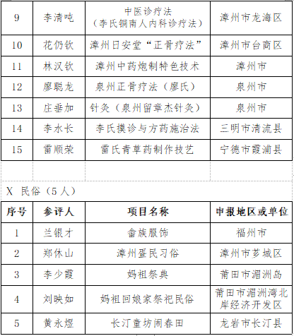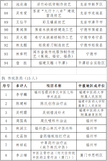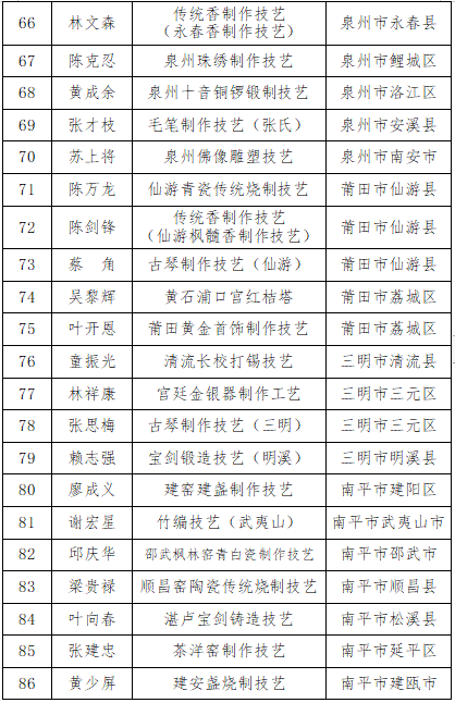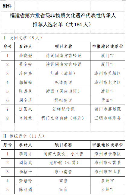 附件:福建省第六批省级非物质文化遗产代表性传承人推荐人选名单(共184人)