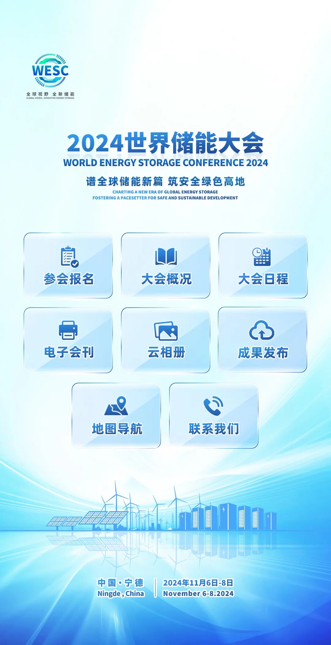 世界储能大会(英文简称WESC)始办于2023年,由宁德市人民政府、福建省工业和信息化厅、工业和信息化部装备工业发展中心联合举办,以“全球视野 全新储能”为永恒主题,致力于成为全球储能行业最具前瞻性和引领性、最有知名度和影响力的国际盛会。