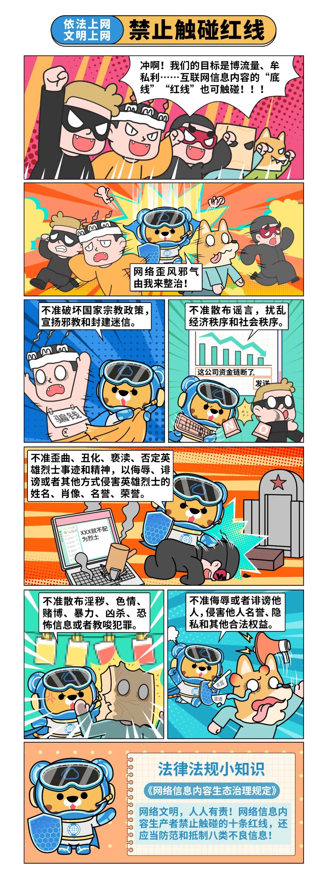 (原标题:网络普法小漫画丨依法上网 文明上网 禁止触碰红线)