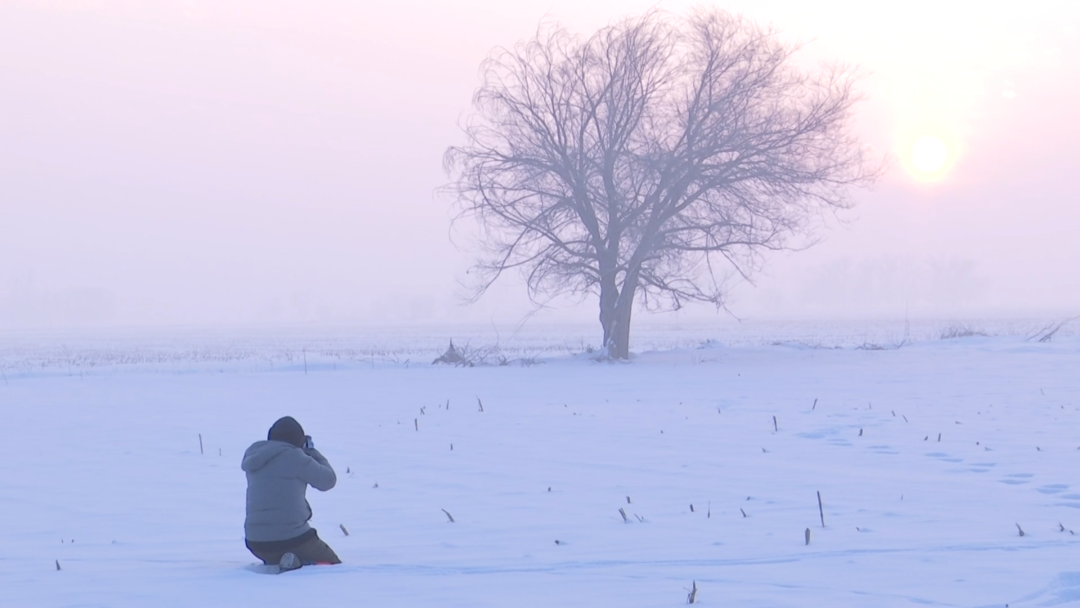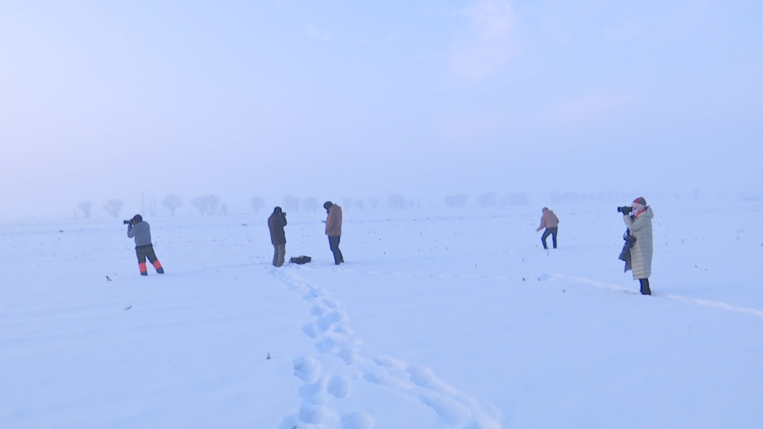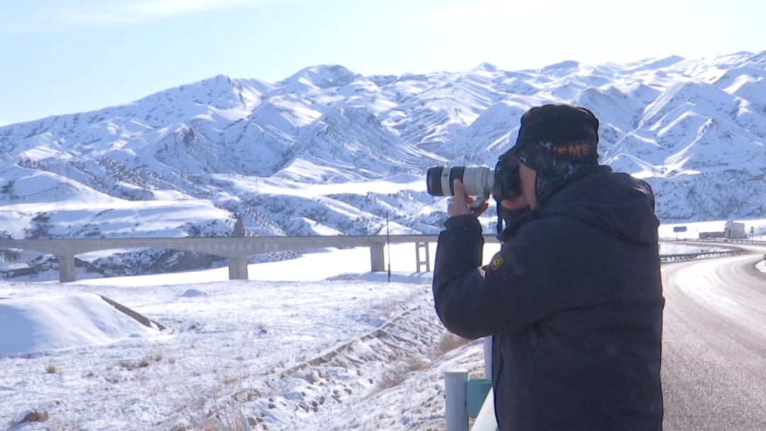 6名摄影家带着相机及无人机等摄影摄像设备,沿途采风,途经赤壁天湖、齐古大桥(丹霞风景线)等景点,踏上山脊,走入雪原,寻找美丽风光。