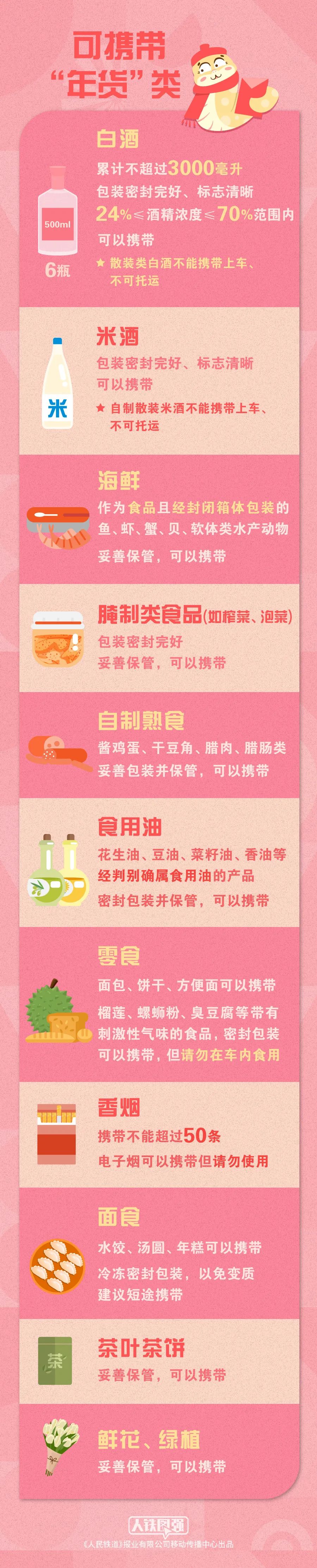 (原标题:春运返程提醒!乘火车可携带年货清单请查收)